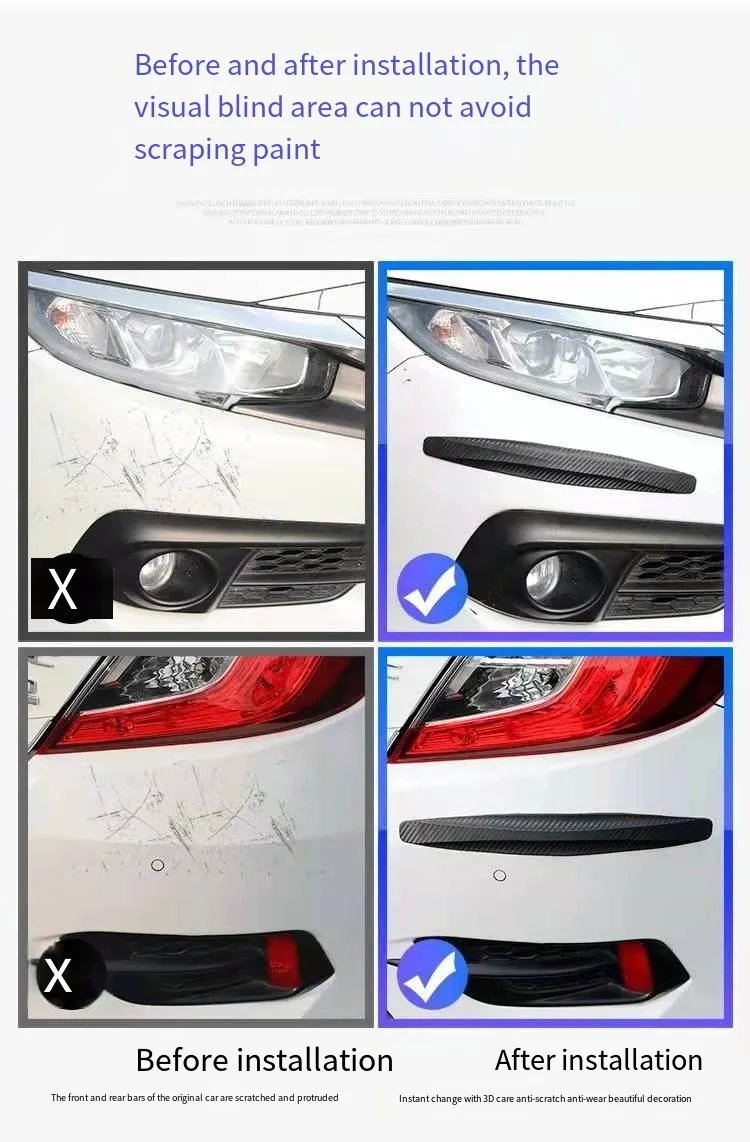 ছবির নিচে দেখা যাচ্ছে স্ট্রিপগুলো কীভাবে গাড়ির বাম্পারে লাগানো যায়, বিশেষ করে পাশের দিকে যাতে ছোটোখাটো ধাক্কায় গাড়ির রঙ উঠা বা স্ক্র্যাচ হওয়া রোধ করে।